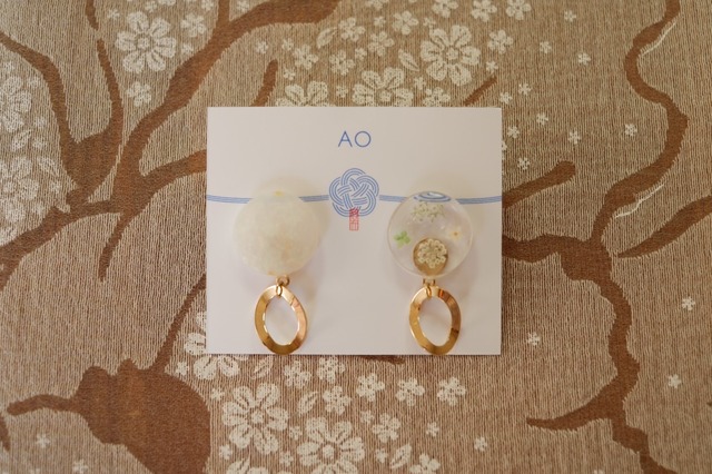 和をイメージした左右デザイン違いのイヤリング。思わず着物が着たくなる、そんなデザインのイヤリングです。