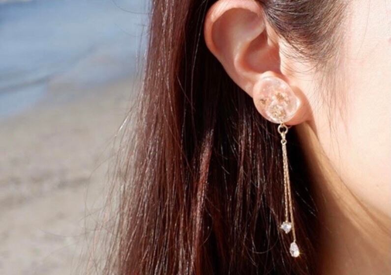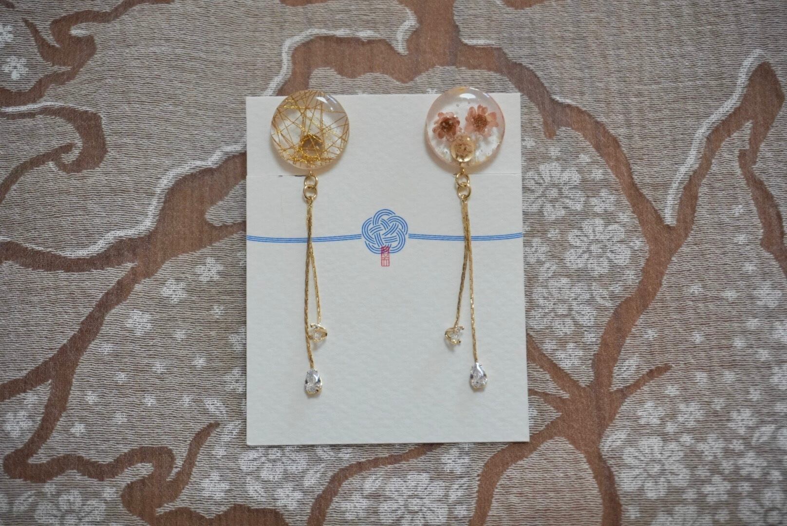 和をイメージした左右デザイン違いのイヤリング。思わず着物が着たくなる、そんなデザインのイヤリングです。