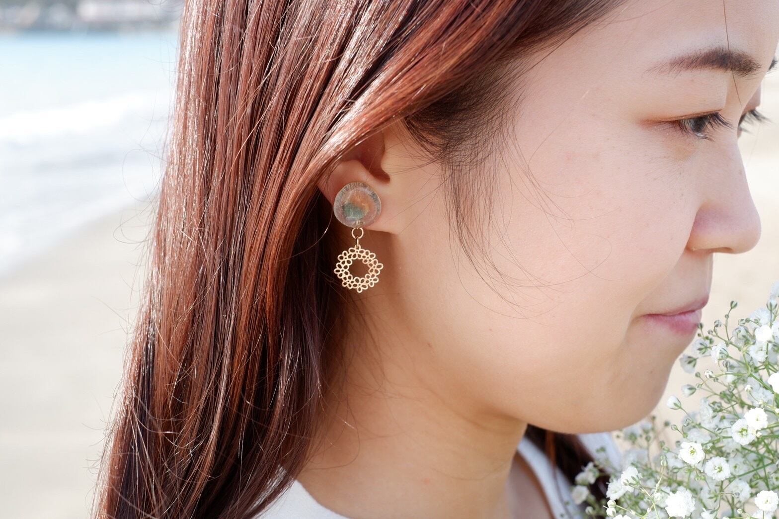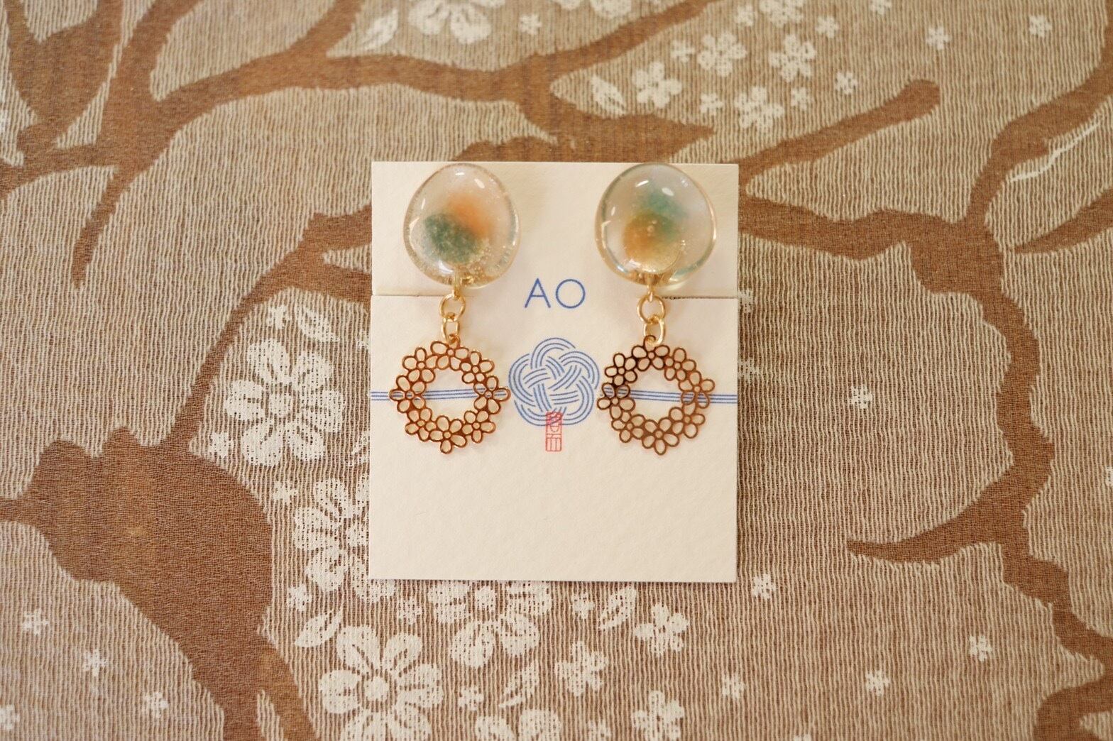 クリスマスをイメージして中央に淡いクリスマスカラーを閉じ込めました。縁には金を施しています。普段使いもできるシンプルで可愛いらしいデザインです。